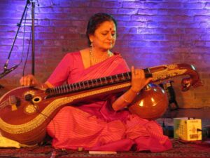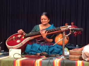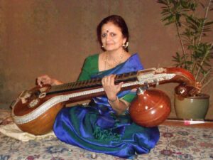 Veena: Sri Pudukottai Jayarama Iyer, in Chennai taught her for 10 years nuances of the instrument and her sincere dedication has made her into a fine veena artiste.